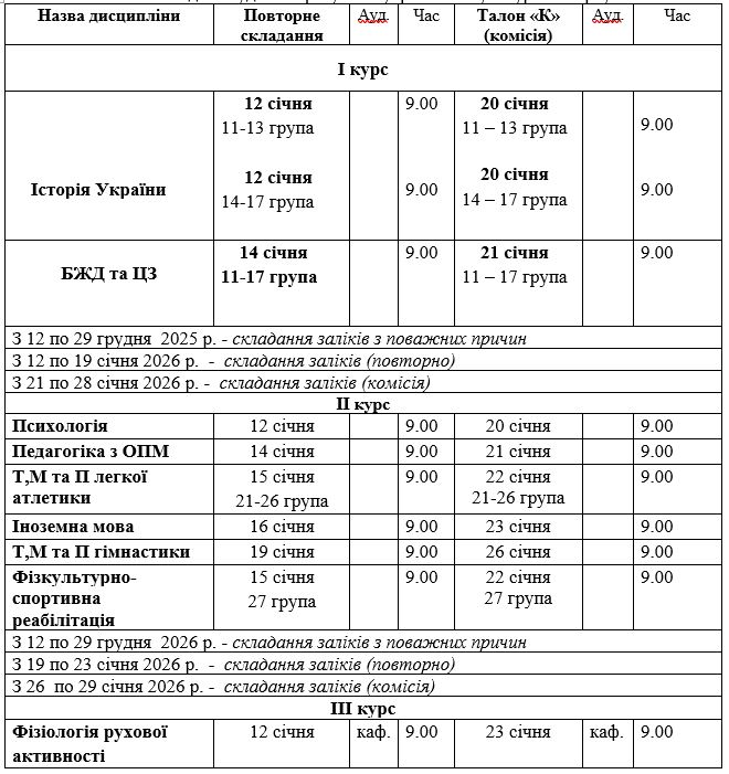 РОЗКЛАД ЗАЛІКІВ та ІСПИТІВ