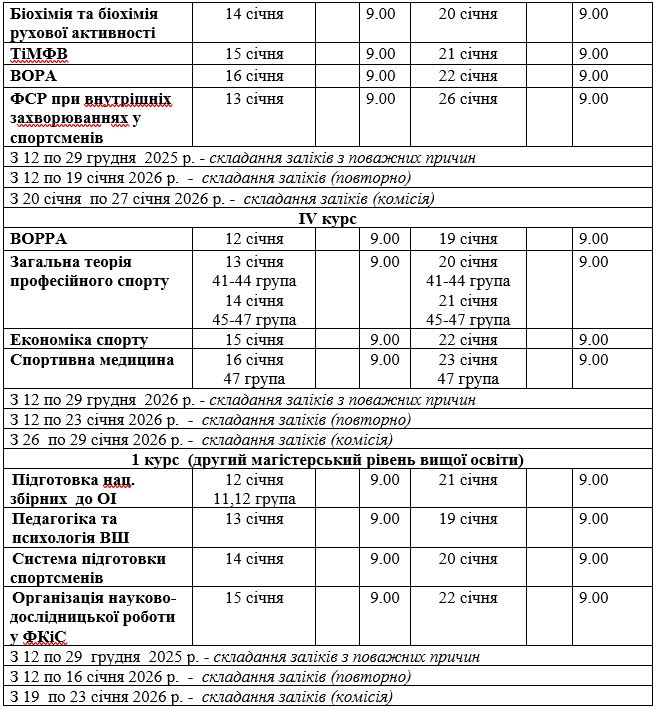 після завершення зимової заліково-екзаменаційної сесії 2023-2024 н.р. для студентів І-V курсів факультету фізичної культури і спорту