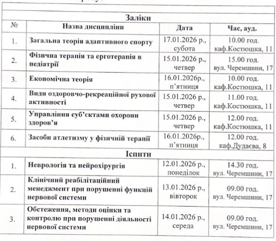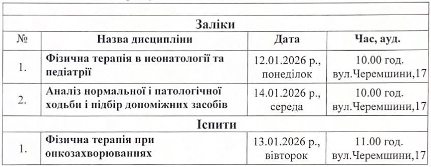 Графік повторного складання заліків та іспитів зимової заліково-екзаменаційної сесії 2025-2026 н.р.