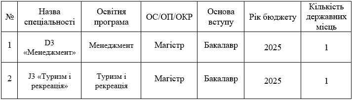 Факультет туризму відповідно до Положення «Про порядок переведення студентів на вакантні місця державного замовлення» ЛДУФК ім. І. Боберського (протокол № 8 від 11.02.2020 р.) та розпорядження факультету ФТР ((№ 17 від 26.01.2026 р) оголошує конкурс на вакантні місця державного замовлення: