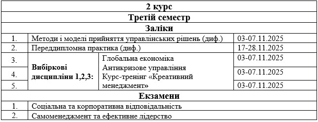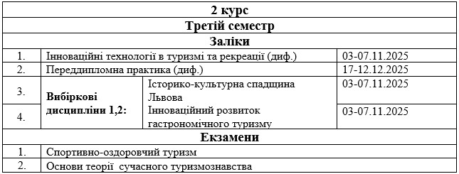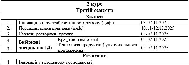 Графік заліків і екзаменів на 2025-2026 н.р. для студентів