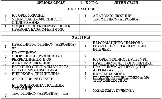Графік складання заліків та екзаменів для студентів за спеціальністю “ФКіС (Оздоровчий і спортивний фітнес)”
