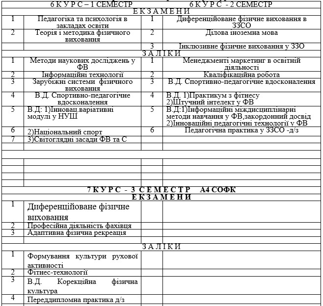 Графік складання заліків та екзаменів магістрантів за спеціальністю “Середня освіта“фізична культура”