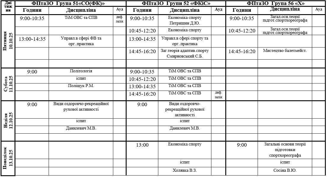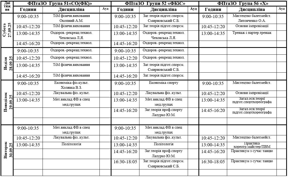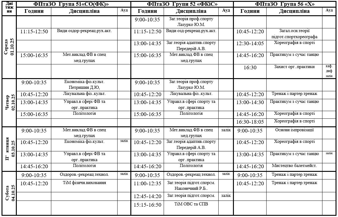 Розклад занять 5-го курсу ФПЗО (групи 51, 52, 56)