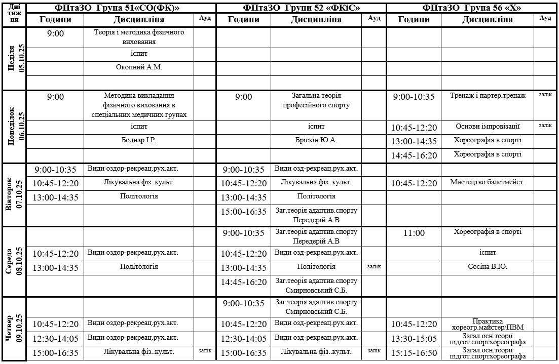 Розклад занять 5-го курсу (групи 51, 52, 56)