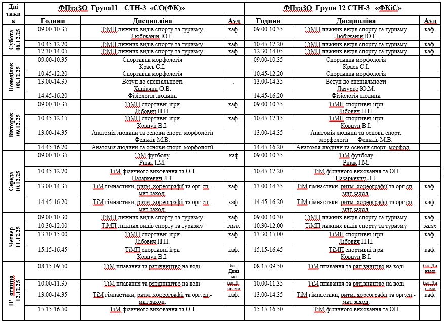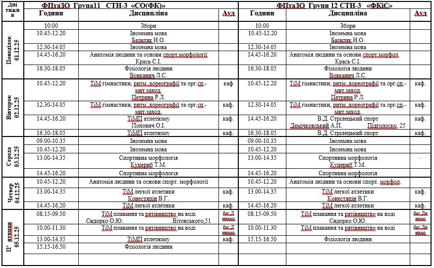 Розклад занять для студентів зі скороченим терміном навчання 1 курс