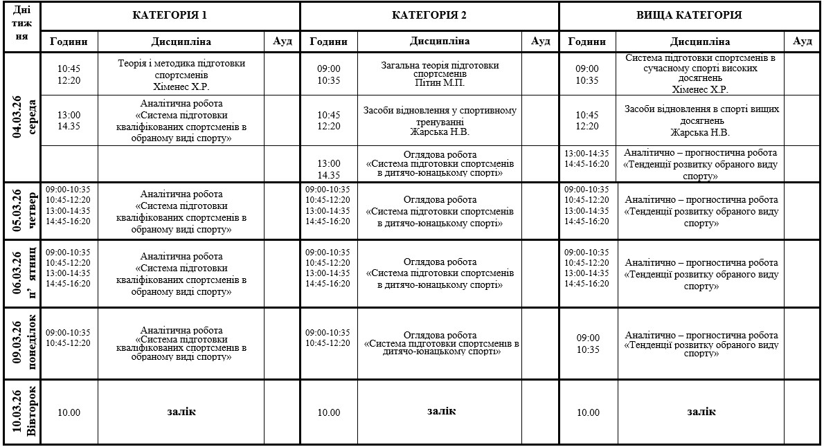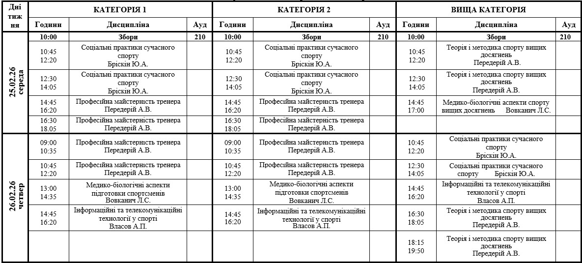 Розклад занять для cлухачів групи з підвищення кваліфікації (тренерів-викладачів)