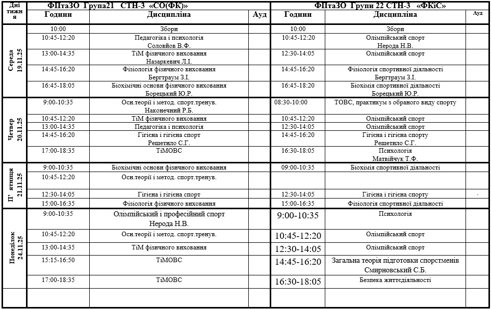 Розклад занять для студентів зі скороченим терміном навчання (2 курс)